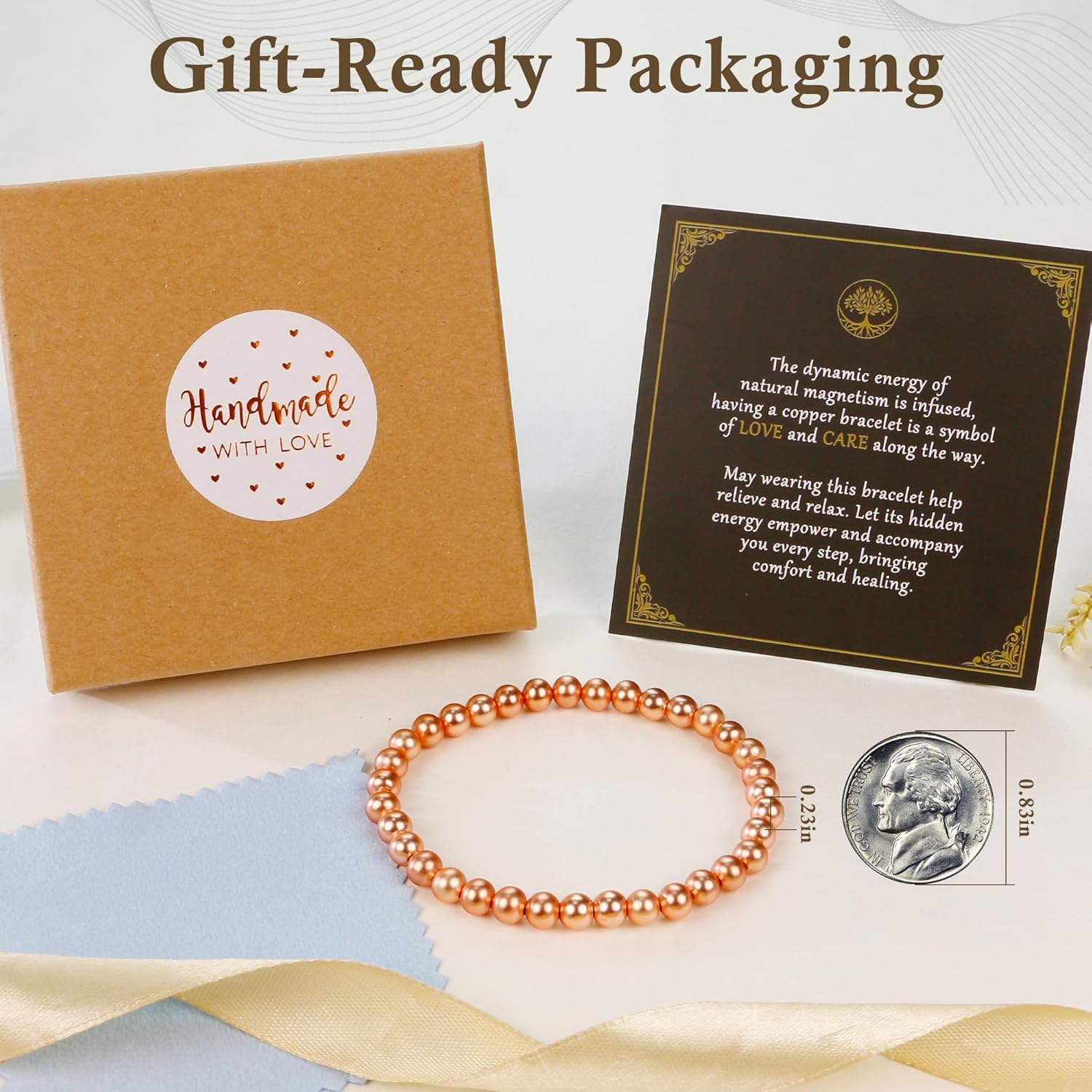 Copper Bracelet for Women and Men, Copper Magnetic Bracelet with 3500 Gauss Magnet Beads as Christmas Gifts, Cooper Jewelry Pulsera De Cobre Para Mujer for Parents Anniversary Birthday Gift