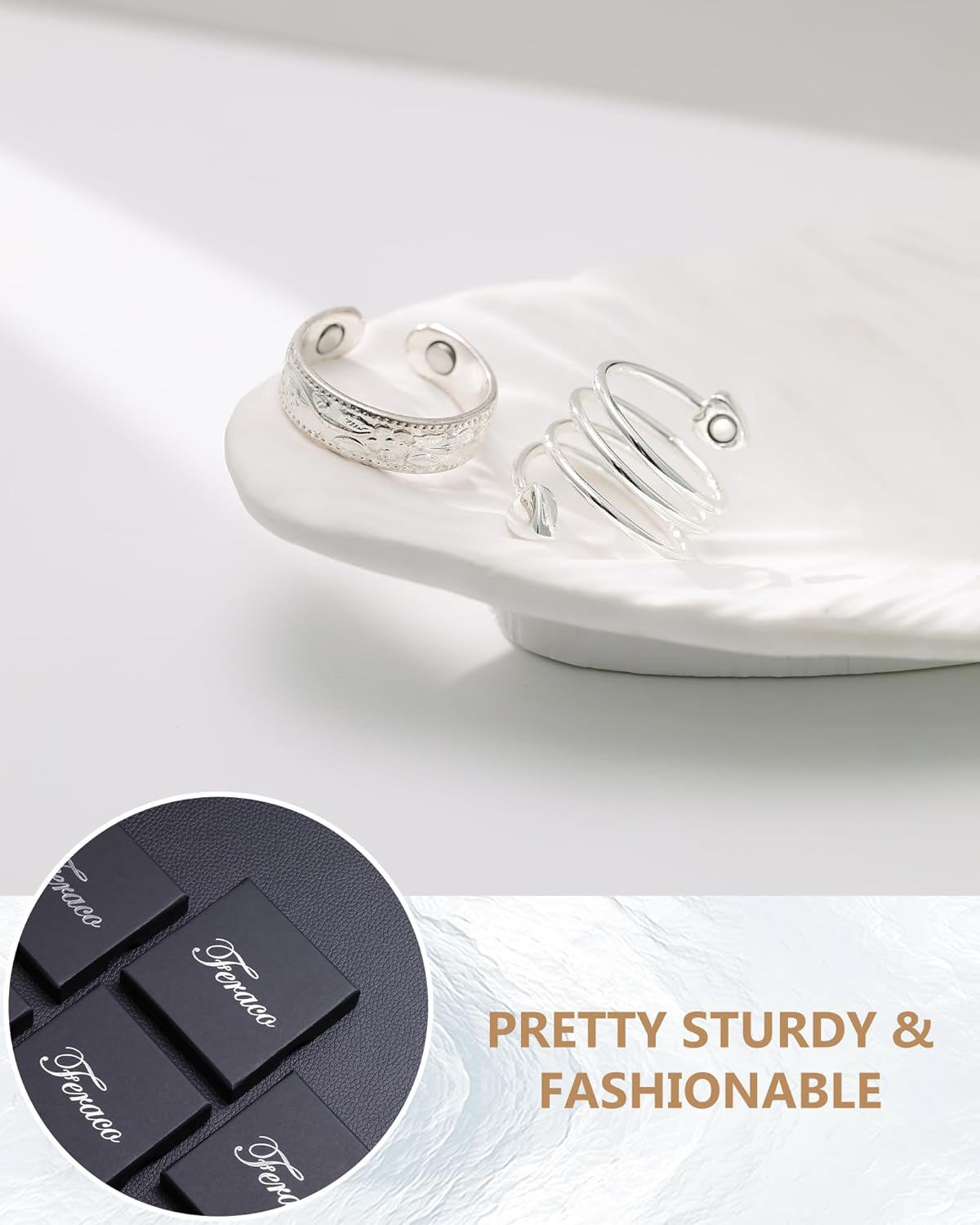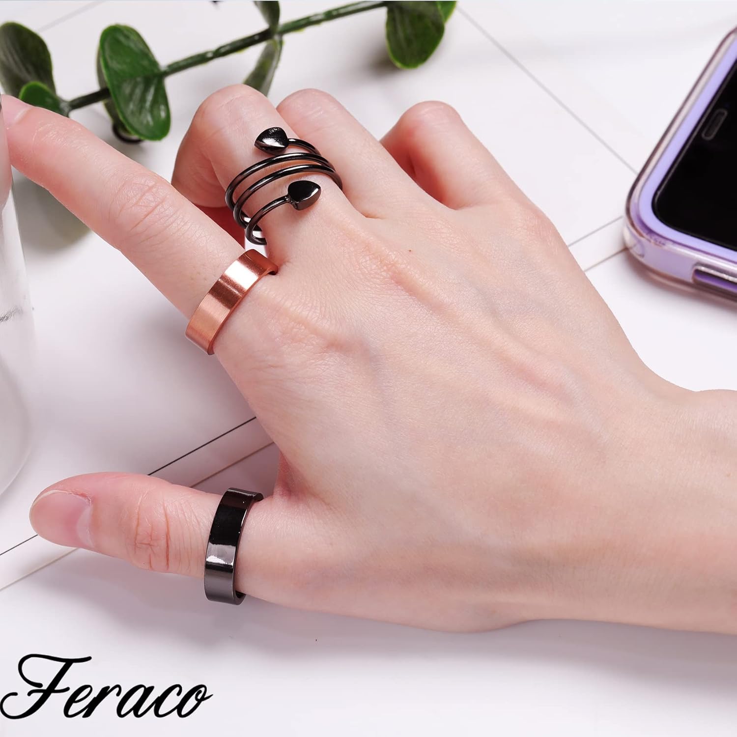 Feraco 2PCS Magnetic Copper Rings For Women,Valentine’s Day Gifts For Women,99.99% Pure Copper Adjustable Thumb Ring.Keep away from All CHILDREN,Swallowed magnets can damage internal organs and have resulted in DEATH and SERIOUS INJURIES.