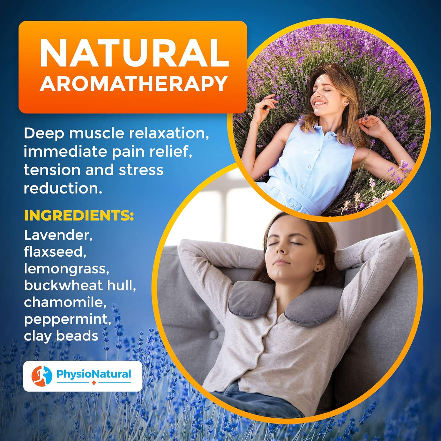 ENJOY PROVEN NATURAL THERAPY WITH A PLEASANT HERBAL SCENT – When heated, this PhysioNatural wrap provides a deep, penetrating warmth right where you need it. The wrap is designed to relieve pain such as muscle stiffness, soreness, inflammation, pinched nerves, abdominal cramps, as well as pain caused by injuries and sprains. To enhance relaxation, the PhysioNatural Neck and Shoulder pillow contains a stress relieving aromatherapy blend of lavender, lemongrass, chamomile, and peppermint.