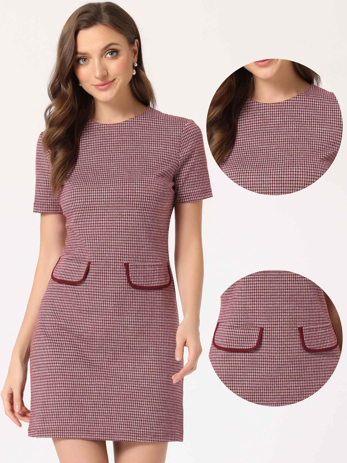 Elevate your work wardrobe with this classic yet stylish dress that features a vintage houndstooth pattern and short sleeves for a timeless look.