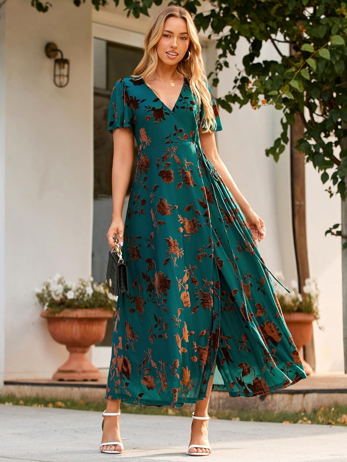 The pictures don’t do it justice. Beautiful dress! The leaves are like a copper colored velvet. Great quality material.