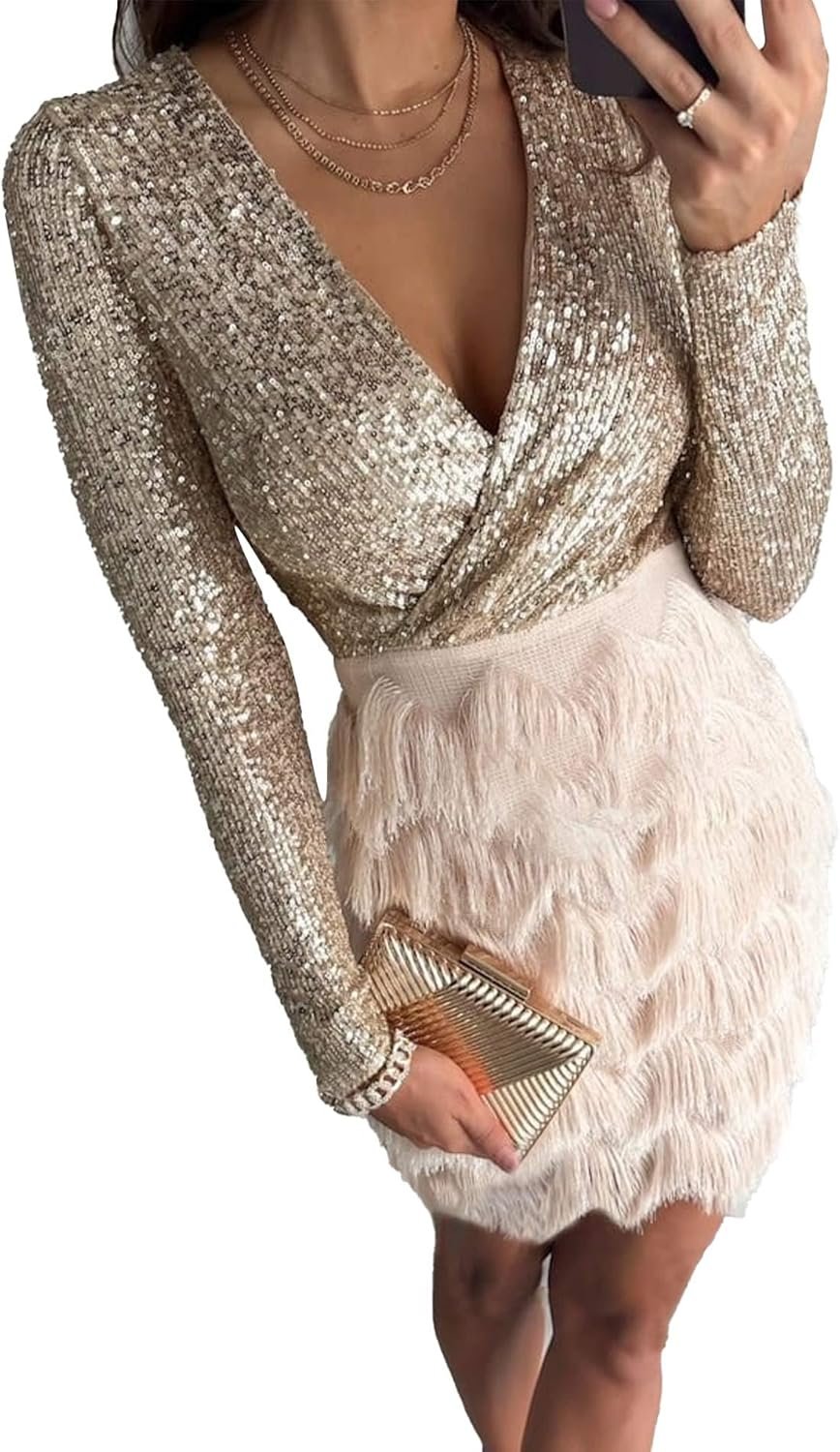 CYiNu Women’s Sexy Long Sleeve V Neck Cocktail Party Evening Club Maxi Dress