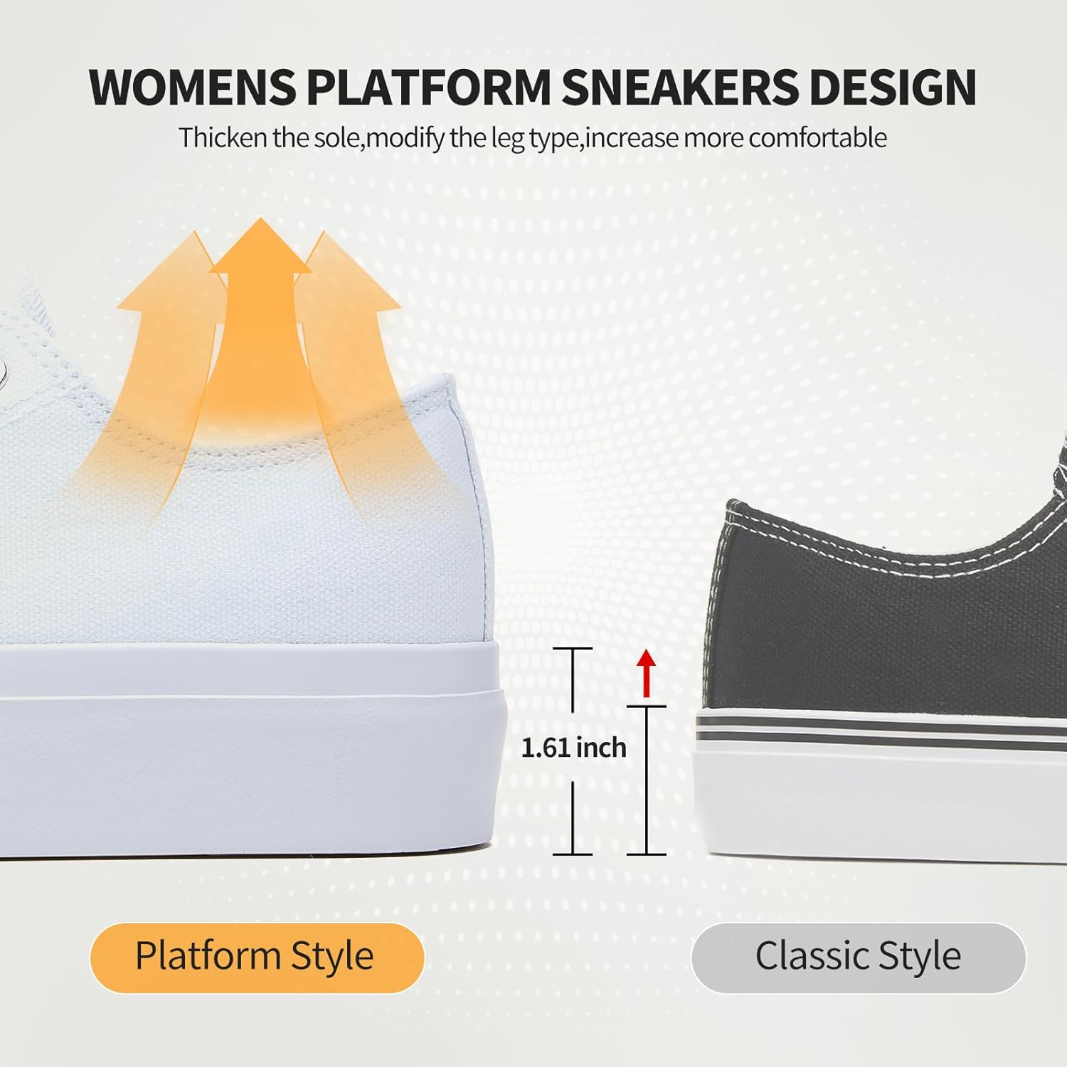 Material: Canvas Sole: Rubber Size: US5-US11 Colour: Black White Platform height: 1.61″(4.1cm) Style: Classic Fashion Street Causal Youth Simple