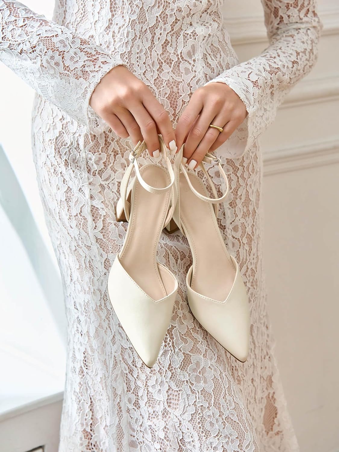 I panic ordered these for my wedding shoes because my other ones were more of a slip on heel style. These were so comfortable. I ran on cobblestone streets and danced for hours in them. Only intended to use once but didn’t even bother with my original pair. They are a little plain Jane but I ordered shoe clips (little jewelry for shoes) to jazz them up and they looked beautiful. Would highly recommend these.