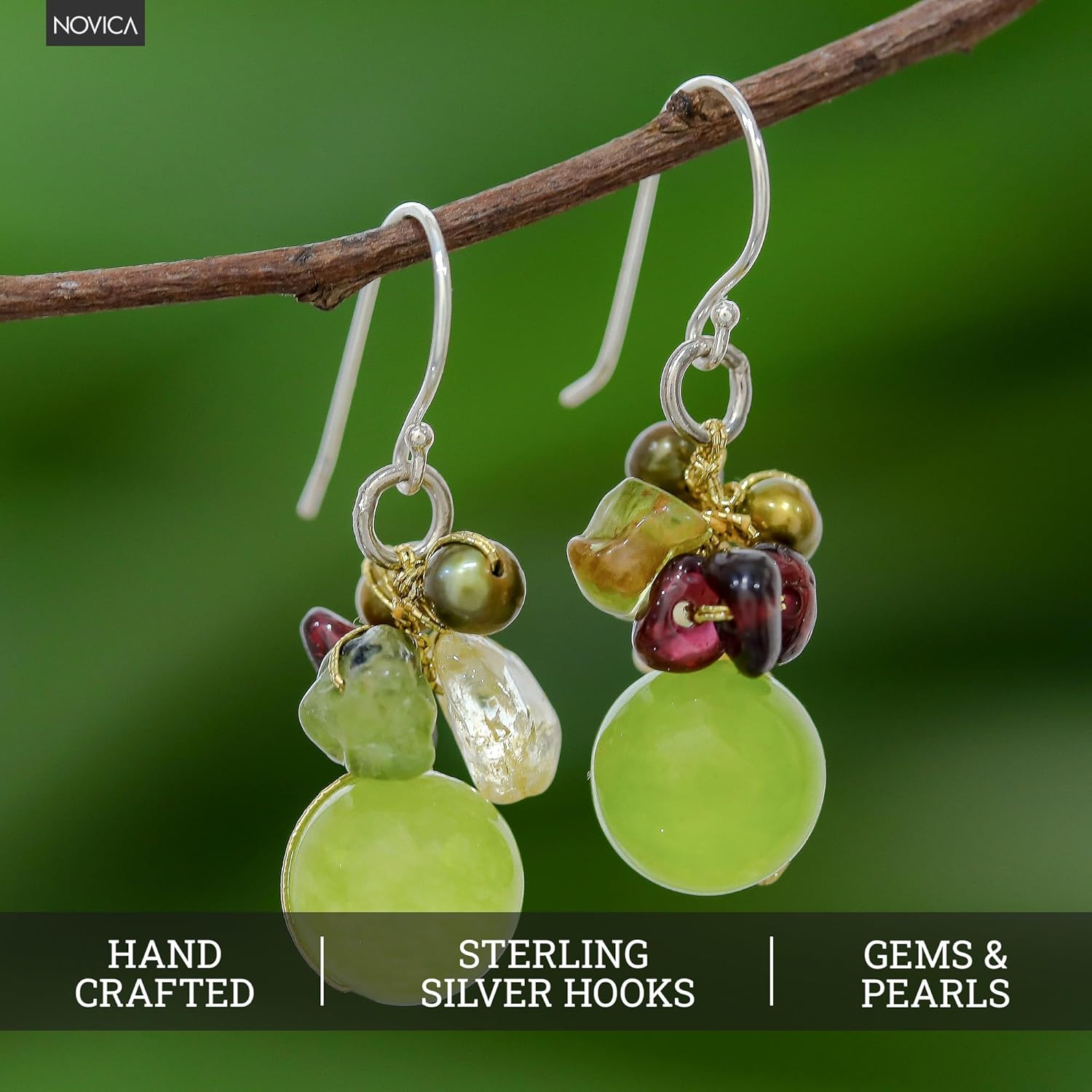 About this item: Knotted by hand on silken strands, colorful gemstones form a bright bouquet. Thai designer Nareerat, combines amethyst and garnet with cool peridot and luminous cultured freshwater pearls, dyed lavender. Earrings measure 1.4″ long by .6″ wide. .925 Sterling silver hooks