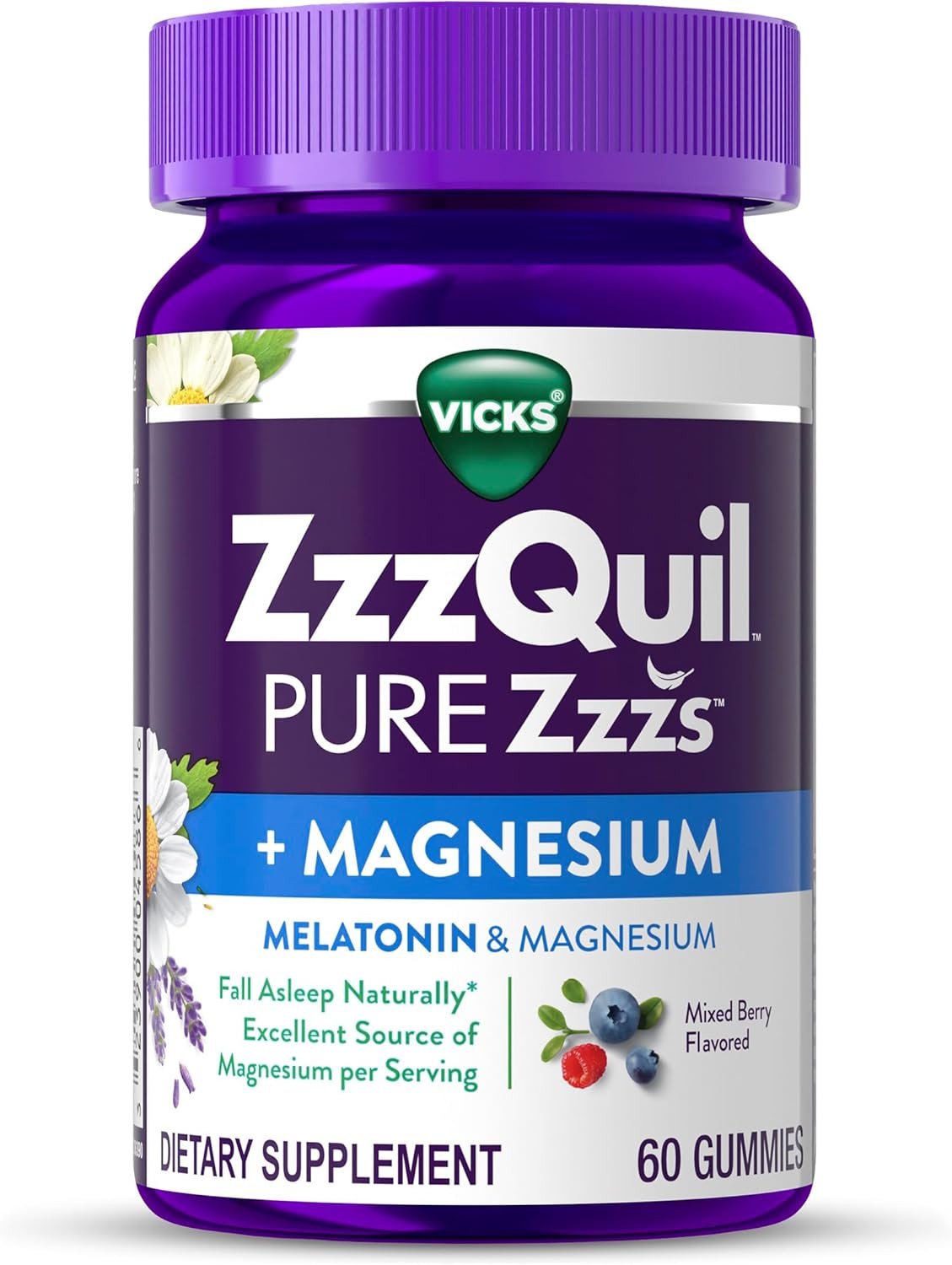 ZzzQuil PURE Zzzs Advanced 10mg Melatonin gummies work naturally with your body’s natural sleep cycle.* If you’ve been struggling with occasional sleeplessness, whether it’s caused by a schedule change, stress, or restless thoughts, consider trying a melatonin supplement! ZzzQuil Advanced Melatonin 10mg gummies are a great choice when you’re dealing with occasional sleeplessness, because they are drug-free and non-habit forming. These melatonin gummies also contain no gelatin and no high fructose corn syrup. This sleep aid work naturally with your body to help you fall asleep.* These fast-acting melatonin gummies^ are delicious, berry flavored. They also contain our unique complementary botanical blend. The botanical blend is a unique fusion of chamomile, lavender, and lemon balm. These fast-acting melatonin gummies^ also have 5x more melatonin compared to PURE Zzzs Melatonin Gummies. From the World’s #1 Sleep Aid Brand.† Better days start with ZzzQuil Nights and ZzzQuil PURE Zzzs Advanced 10mg Melatonin Gummies. ^vs. placebo. *These statements have not been evaluated by the Food and Drug Administration. This product is not intended to diagnose, treat, cure, or prevent any disease. †Source Euromonitor International Limited; Consumer Health 2024 Edition; Sleep Aids, all channels, retail selling price, Global Brand Name ZzzQuil 2023 data